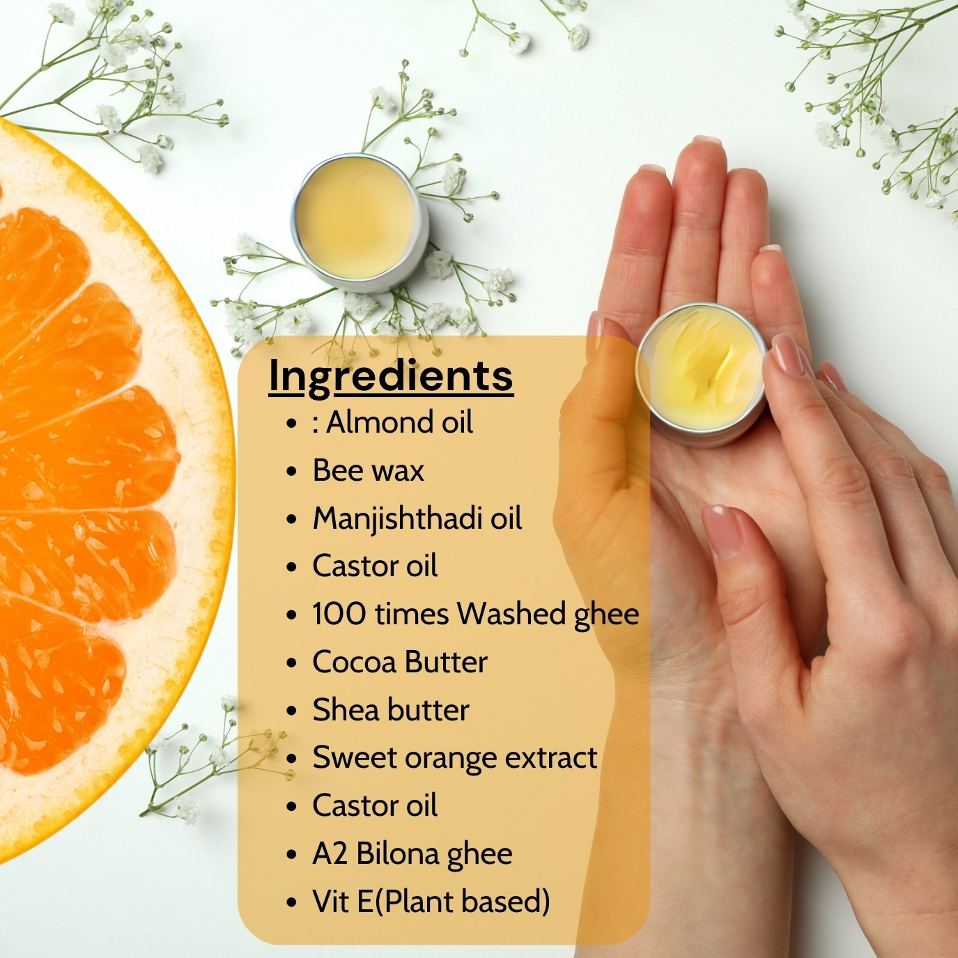 These ingredients work together to nourish, moisturize, and protect the lips, offering natural hydration and softness while promoting healthy, beautiful lips.