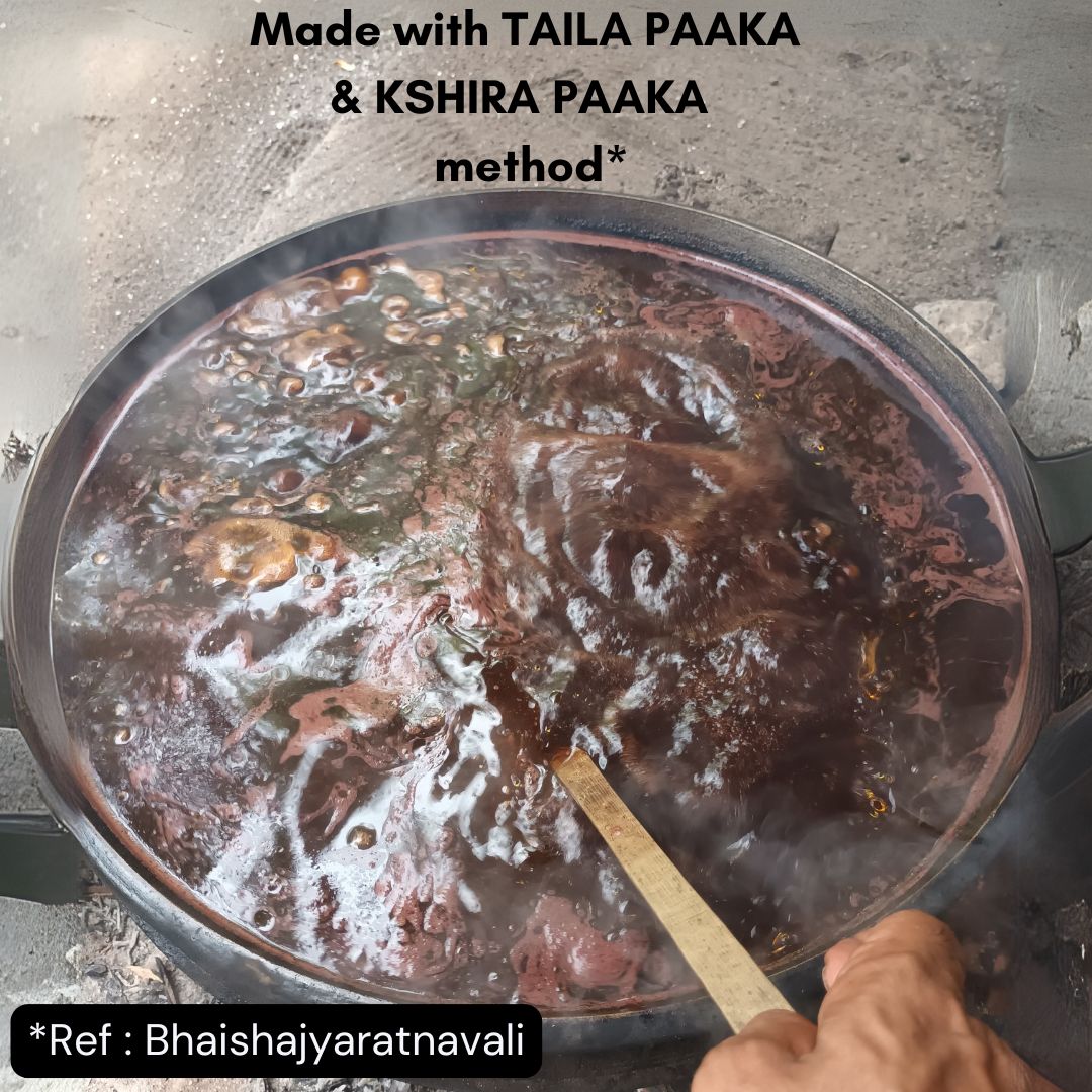 With unwavering devotion to time-tested ayurvedic wisdom, the serum comprises 26 fresh and pure ingredients, starting with the base oil, BULL DRIVEN SESAME OIL. The blend includes freshly harvested saffron, sandalwood, fresh lotus flowers, Licorice, Laksha, Bilwa roots, goat milk, and 19 other herbs. All herbs are “VARNYAKARA” which means to improve the complexion.The serum’s reddish-golden texture and soothing saffron aroma make it a luxurious treat for the skin, ensuring an experience you’ll adore.