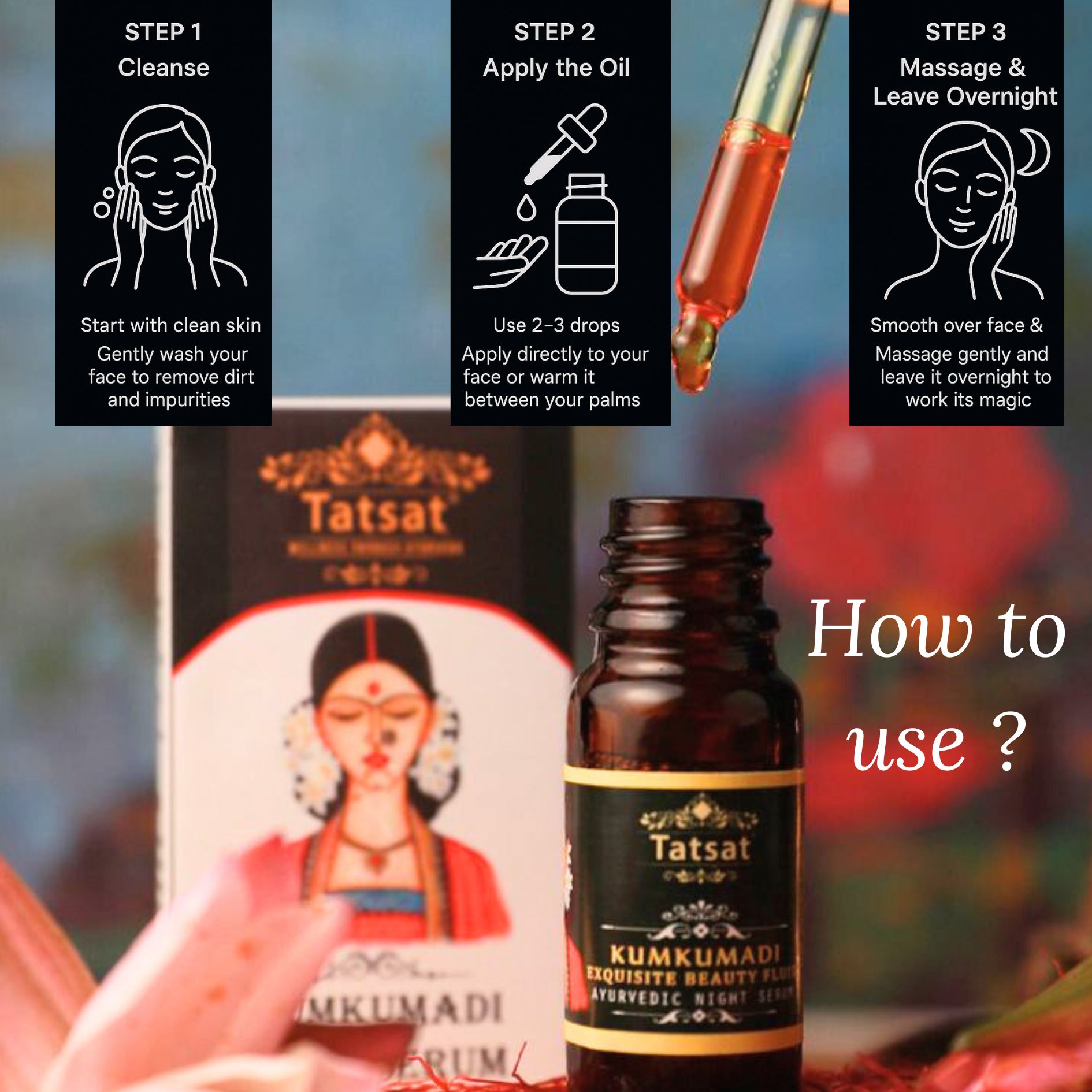 Application of Tatsat Ayurvedic night serum is effortless, ensuring quick skin absorption without leaving excessive oil.