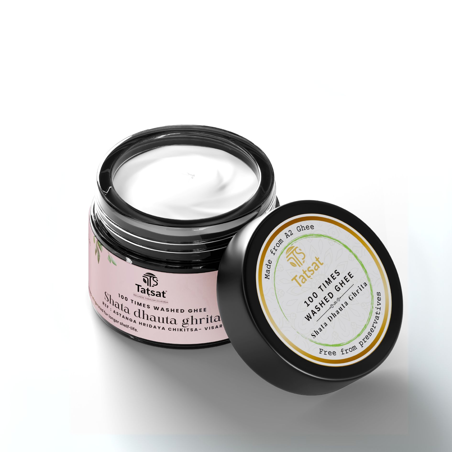 Tatsat Shata Dhauta Ghrita -100 Times Washed Desi Cow A2 Ghee moisturizing cream. Anti-Aging, Removes Stretch Marks